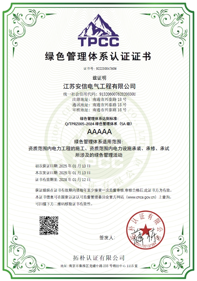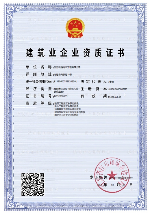在創(chuàng)業(yè)之初,公司就堅(jiān)持高起點(diǎn)的戰(zhàn)略思路,廣納賢才,集聚行業(yè)精英,創(chuàng)新發(fā)展,做優(yōu)企業(yè)品牌。現(xiàn)已取得:承裝二級(jí)、承修二級(jí)、承試二級(jí),電力工程施工總承包二級(jí),輸變電工程專業(yè)承包二級(jí),建筑工程施工總承包二級(jí),建筑機(jī)電安裝專業(yè)承包二級(jí),地基基礎(chǔ)專業(yè)承包二級(jí)資質(zhì)證書,并通過(guò)了質(zhì)量、環(huán)境、職業(yè)健康和安全管理體系認(rèn)證,確保各項(xiàng)工作有序管控。